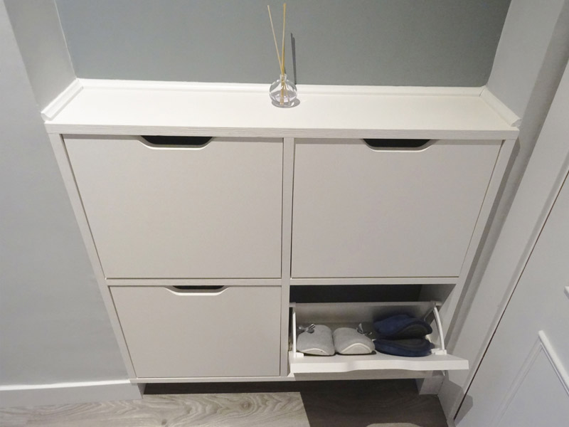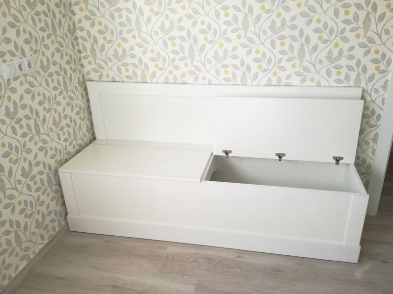 Además de las estancias mencionadas, diseñamos mobiliario accesorio a medida para cualquier rincón de tu hogar: zapateros, bancos de rincón, estanterías, armarios empotrados…